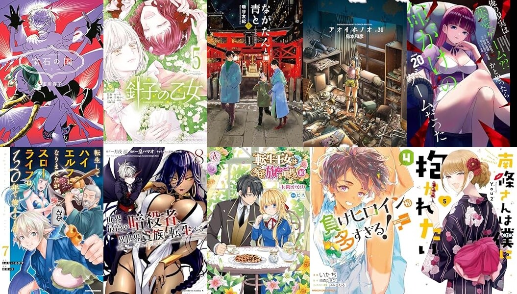KADOKAWA「針子の乙女 (5)」「世界最高の暗殺者、異世界貴族に転生する (8)」「回復術士のやり直し(16) 」「平民出身の帝国将官、無能な貴族上官を蹂躙して成り上がる (2)」など、講談社「ながたんと青と-いちかの料理帖-(13)」「おいおいピータン!!(6)」など、小学館「アオイホノオ(31)」「負けヒロインが多すぎる!@comic(4)」「マチネとソワレ(16)」など、スクウェア・エニックス「俺の現実は恋愛ゲーム??20巻」「南條さんは僕に抱かれたい 5巻」など発売です。