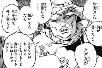 【ジョジョ】好きな台詞 2025/1/28 ねいろ速報さん " " 名前:ねいろ速報 ジョジョ 荒木飛呂彦 集英社 名前:ねいろ速報 1 ここかなり好きなんだけど 車ババアと違って長いのとクレーム入れてきたクソ客に対するセリフだから使いにくいんだよな 名前:ねいろ速報 2 こんなセリフ使うな 続きを読む Source: ねいろ速報さん