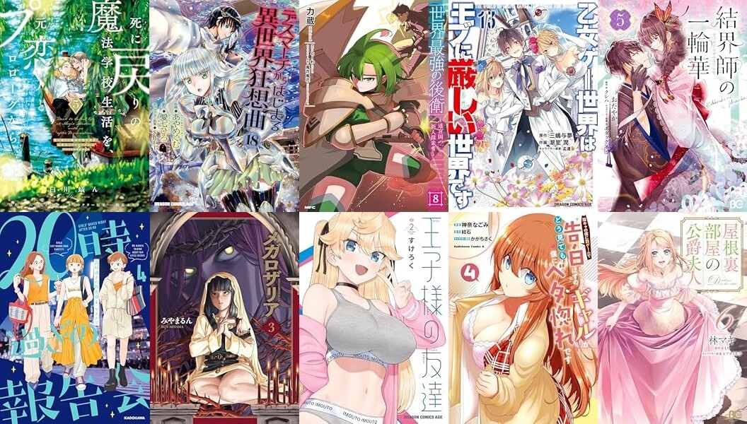 「死に戻りの魔法学校生活を、元恋人とプロローグから」「デスマーチからはじまる異世界狂想曲」「世界最強の後衛」「乙女ゲー世界はモブに厳しい世界です」「結界師の一輪華」「20時過ぎの報告会」「メガロザリア」「王子様の友達」「陰キャの僕に罰ゲームで告白してきたはずのギャルが、どう見ても僕にベタ惚れです」「屋根裏部屋の公爵夫人」「帰ってください! 阿久津さん」など対象です。