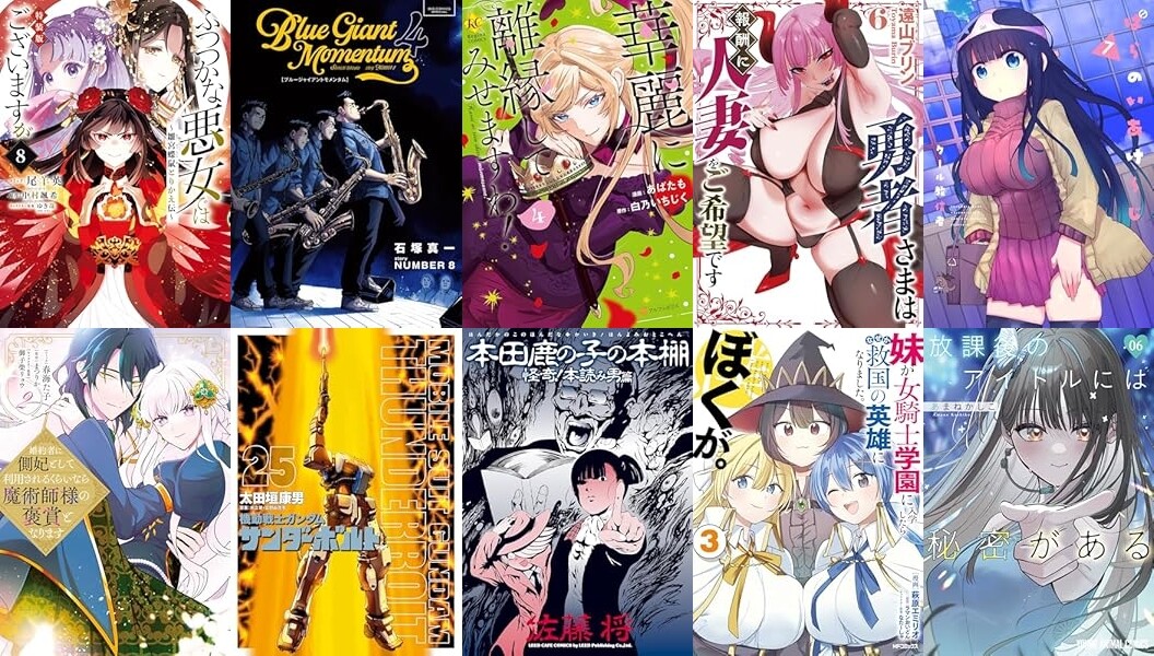 一迅社「ふつつかな悪女ではございますが8」「婚約者に側妃として利用されるくらいなら魔術師様の褒賞となります: 2」など、小学館「BLUE GIANT MOMENTUM(4)」「機動戦士ガンダム サンダーボルト(25)」「路傍のフジイ(4)」「ガイシューイッショク!(6)」「ギャラリーフェイク(39)」「レ・セルバン(6)」など発売。
