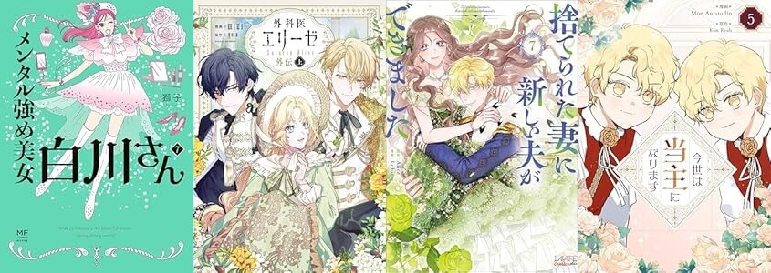 KADOKAWA「メンタル強め美女白川さん7」「外科医エリーゼ外伝 上下」「もっとお家、見せてもらっていいですか?」「訳あり伯爵様と契約結婚したら、義娘(六歳)の契約母になってしまいました。(2)」など、一二三書房「捨てられた妻に新しい夫ができました 7」、Piccomics「今世は当主になります 5」「公爵夫人の50のお茶レシピ 8」「暴君な兄が3人います 4」など、白泉社「傷痕王子妃は幸せになりたい 5」「死に戻り令嬢のルチェッタ 4」など、ヒーローズ「仮面ライダークウガ(26)」、竹書房「みこどもえ (2) 」など発売です。