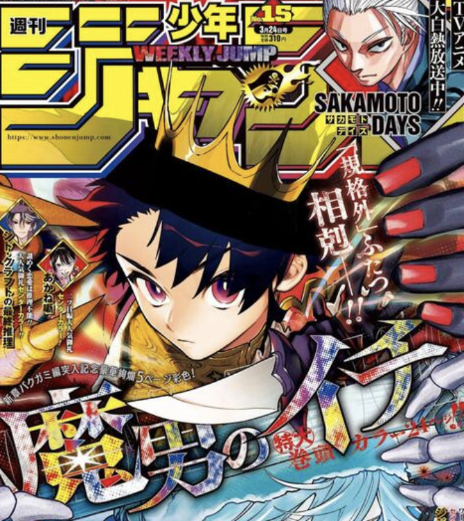 マンガ「魔入りました!入間くん」で知られる西修さんが原作、宇佐崎しろさんが作画を手掛けるマンガ「魔男のイチ」が、3月10日発売の連載誌「週刊少年ジャンプ」(集英社)15号で表紙、巻頭カラーを飾った。巻頭カラーは“特大”5ページで、2012年に古舘春一さんの「ハイキュー!!」が同じく特大5ページカラーを実施しているが、同誌では異例という。新章「バクガミ編」への突入を記念し、表紙、巻頭カラーに登場した。付録は、同作の人気キャラクターがデザインされたフレークシールシート。