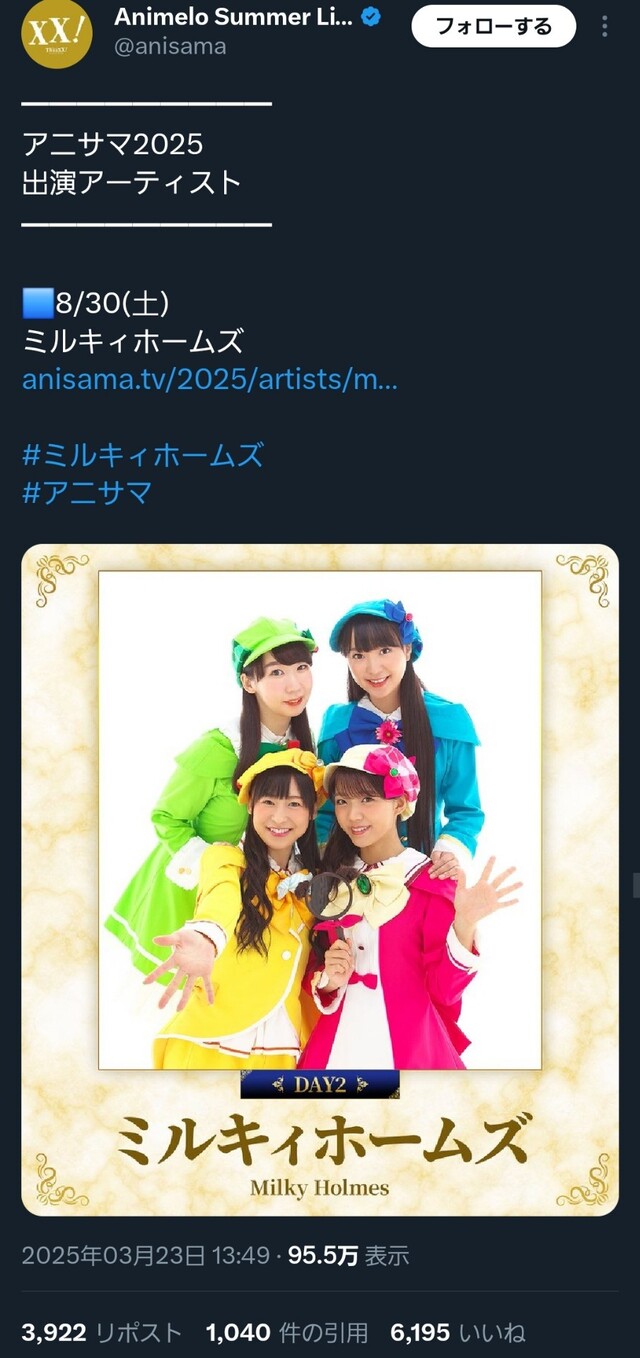 ミルキィホームズ突如として復活 2025/3/23 ねいろ速報さん " " 名前:ねいろ速報 名前:ねいろ速報 1 一夜限りでなく? 名前:ねいろ速報 2 よく…揃えられたな… 続きを読む Source: ねいろ速報さん