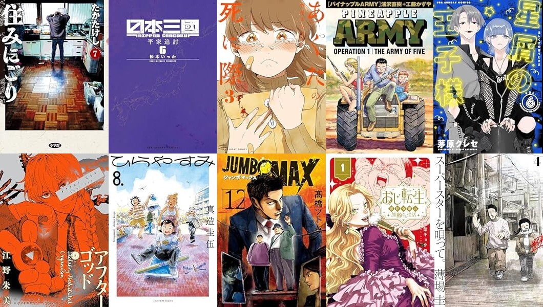 「住みにごり」「日本三國」「あくたの死に際」「パイナップルARMY 完全増補デジタル版」「星屑の王子様」「アフターゴッド」「ひらやすみ」「JUMBO MAX」「おじ転生」「スーパースターを唄って。」「ヨシダ檸檬ドロップス」「ダンス・ダンス・ダンスール」「ゾン100」「闇金ウシジマくん外伝 肉蝮伝説」「健康で文化的な最低限度の生活」