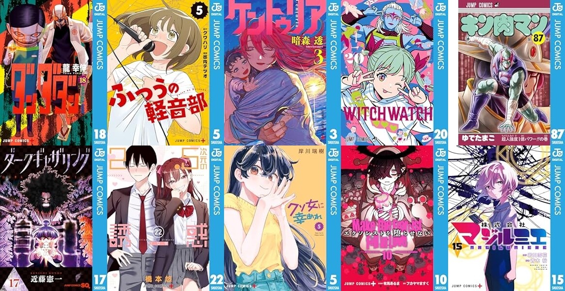 アニメ化で話題!2期も決定している「ダンダダン」に、等身大の青春バンドマンガ「ふつうの軽音部」、新時代ダークファンタジー「ケントゥリア」、4月からアニメが始まるよ!「ウィッチウォッチ」、ほか「ダークギャザリング」「2.5次元の誘惑」「クソ女に幸あれ」「エクソシストを堕とせない」「キン肉マン」「目の前の神様」「株式会社マジルミエ」「僕とロボコ」「幼稚園WARS」「戦奏教室」「キルアオ」などが対象です。