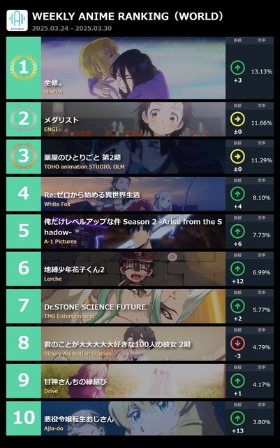 海外配信だとメダリスト薬屋抑えて全修が1位 2025/4/1 ねいろ速報さん " " 名前:ねいろ速報 なんだ外人の評価もうよくわからんな… 名前:ねいろ速報 1 外人オリジナルだとやたら評価するよね 名前:ねいろ速報 3 このサイトどれ位信頼性あるの? 続きを読む Source: ねいろ速報さん
