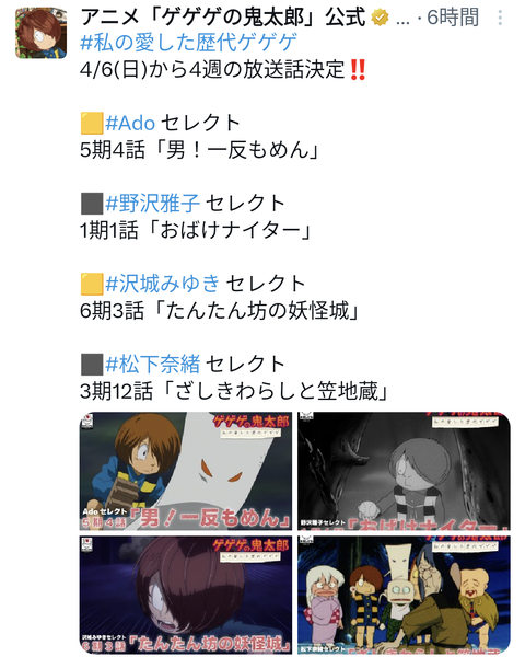 【ゲゲゲの鬼太郎】adoセレクト! 2025/4/3 ねいろ速報さん " " 名前:ねいろ速報 adoちゃん… 名前:ねいろ速報 1 Adoはゲゲゲのなんなんだよ 名前:ねいろ速報 4 >>1 何って…主題歌アーティストだが… 続きを読む Source: ねいろ速報さん