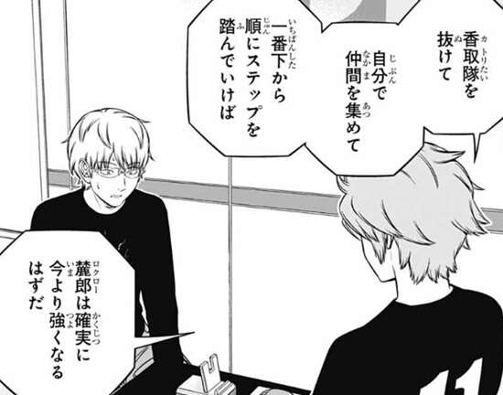 ヒュースは今回の遠征選抜試験でアフトに戻らねばならない、ユーマは残された時間が不明、絵馬は雨取がアフトに行くなら是が非でもついていきたい鳩原の件もあるし