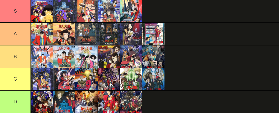 ルパンのTVSPのtier表を作ってみたんだけど 2025/4/30 ねいろ速報さん " " 名前:ねいろ速報 もし語れる人がいたら異論や指摘とか欲しい 一時期ルパンにハマってTVSPとか見まくってたんでちょっとは信憑性あると思うの 名前:ねいろ速報 1 タイトルは覚えてるけどキービジュまで覚えてないからタイトル読み取れるほうがありがたい 名前:ねいろ速報 2 大体わかるけど画像小せえ! 続きを読む Source: ねいろ速報さん