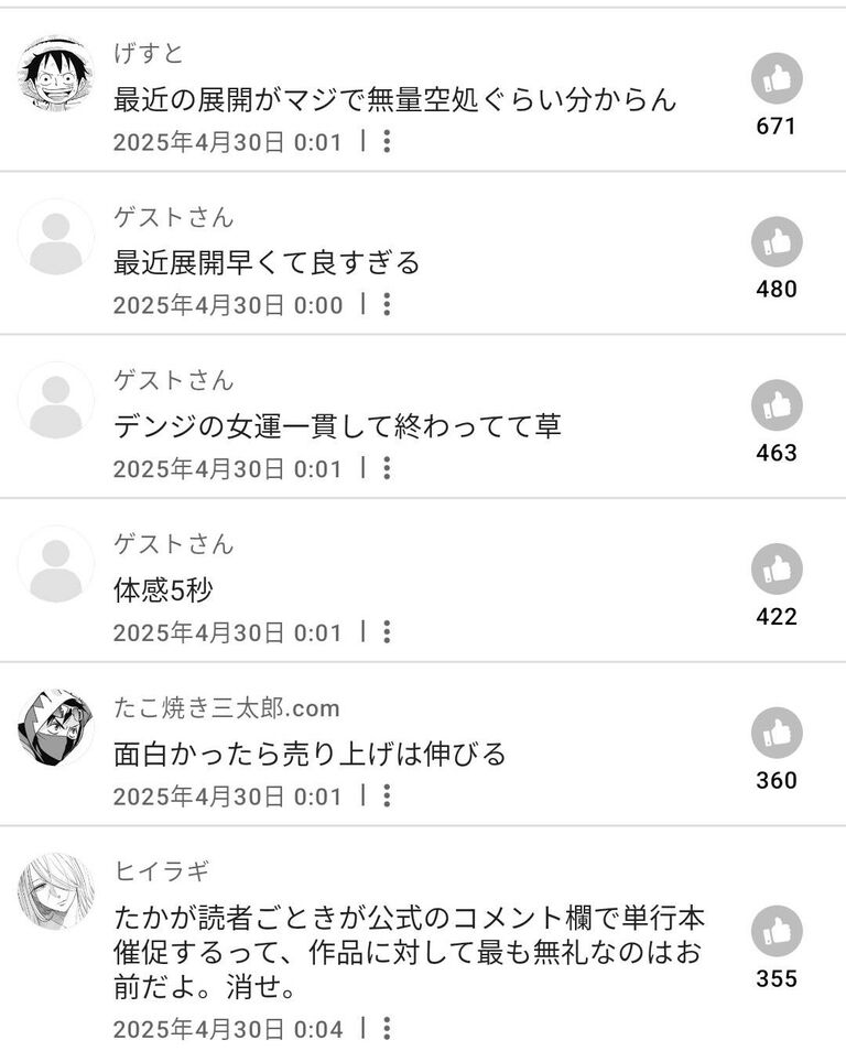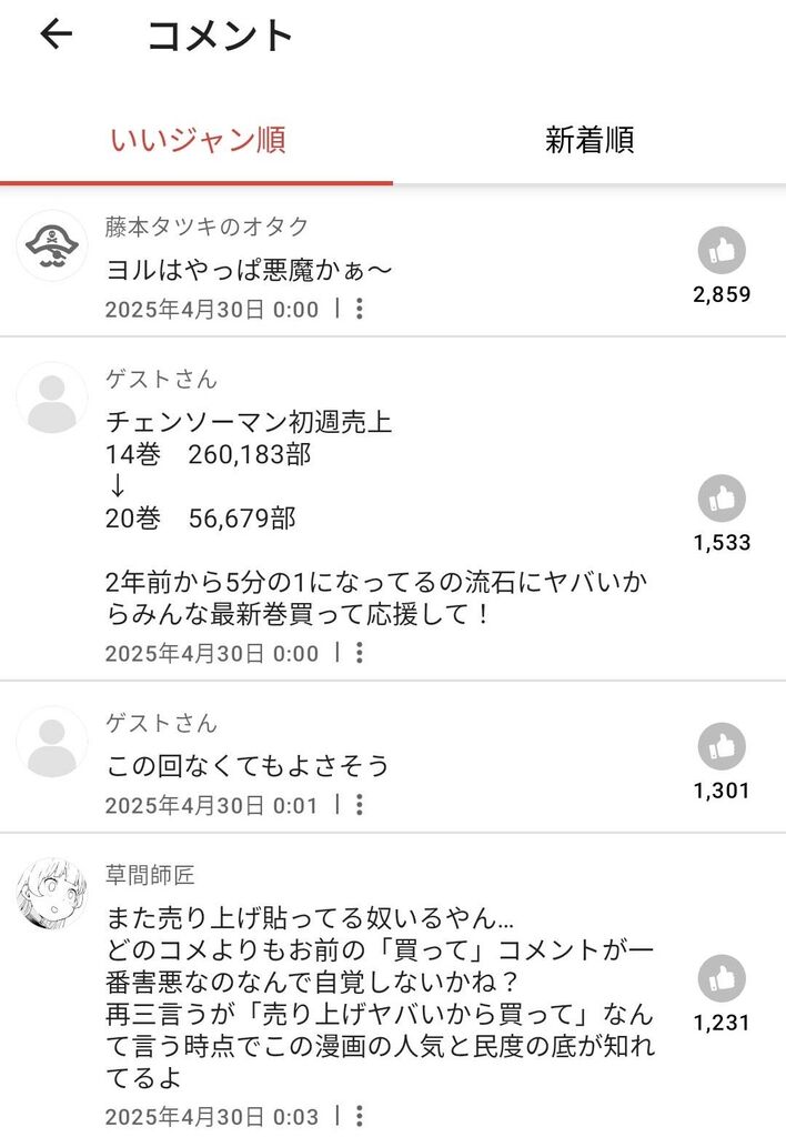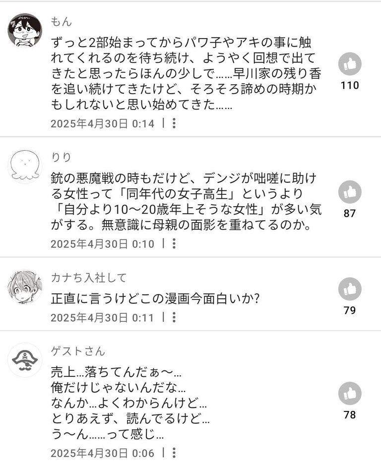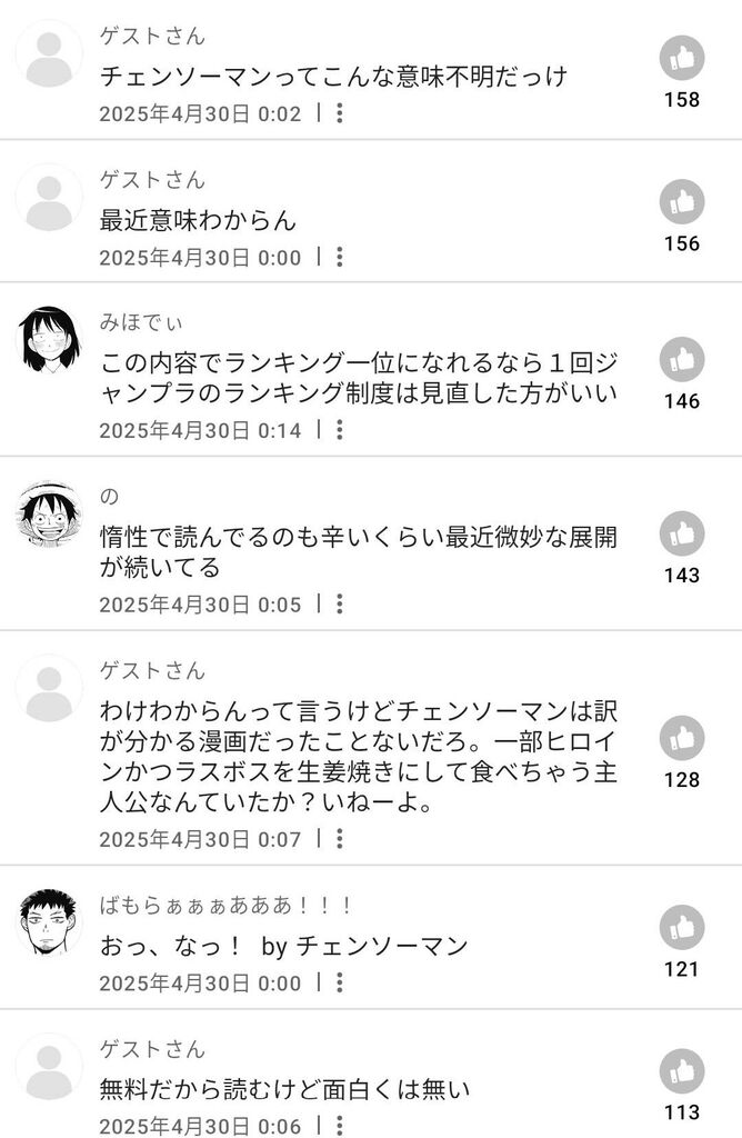 【火柱】チェンソーマン2部更新キタ━━━(゚∀゚)━━━!!読者の反応がヤバい……!! 2025/5/2 ジャンプ速報 " " 1: 風吹けば名無し 2025/05/01(木) 13:15:40.04 ID:CwQ3BQLf0 いいね数順でこれ 続きを読む Source: ジャンプ速報