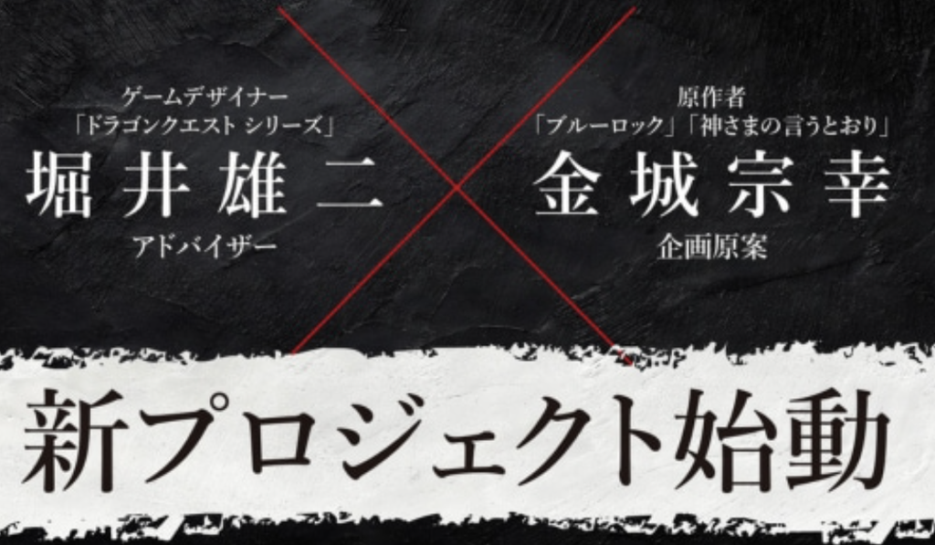 本プロジェクトでは、『ドラゴンクエスト』の生みの親である堀井雄二氏と、『ブルーロック』『神さまの言うとおり』などの原作者として知られる金城宗幸氏が初のタッグ。