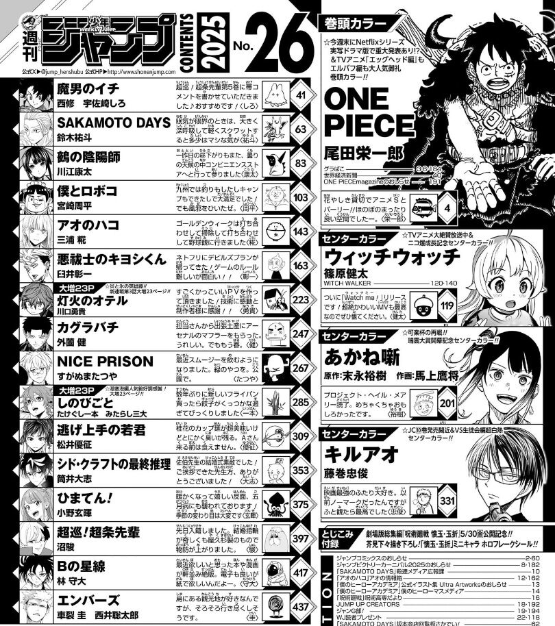 【画像】現在の「週刊少年ジャンプ」連載陣、人気TOP5がこちらwwww 2025/5/27 最強ジャンプ放送局 " " 1: 2025/05/26(月) 今のジャンプの掲載順TOP5 ワンピース アオハコ 鵺 サカモト イチ 3: 2025/05/26(月) 鵺第1カラーの上は草 2: 2025/05/26(月) ドベ4率の高さから鵺の四陽師とか言われてたのに 上位4になるのか… 4: 2025/05/26(月) 鵺はもうアニメ化決まったくらいの位置になってるな 続きを読む Source: 最強ジャンプ放送局