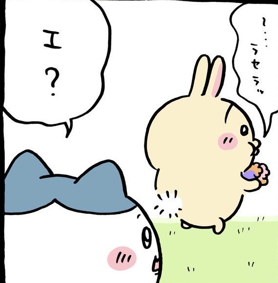 【ちいかわ】ケセラセラ 2025/6/27 ねいろ速報さん " " 名前:ねいろ速報 ☁️ ☁️ pic.twitter.com/y9ey2Cht9i — ちいかわ💫アニメ火金 (@ngnchiikawa) June 26, 2025 名前:ねいろ速報 1 うさぎが喋った 名前:ねいろ速報 2 ツツウラウラを忘れたのか 続きを読む Source: ねいろ速報さん