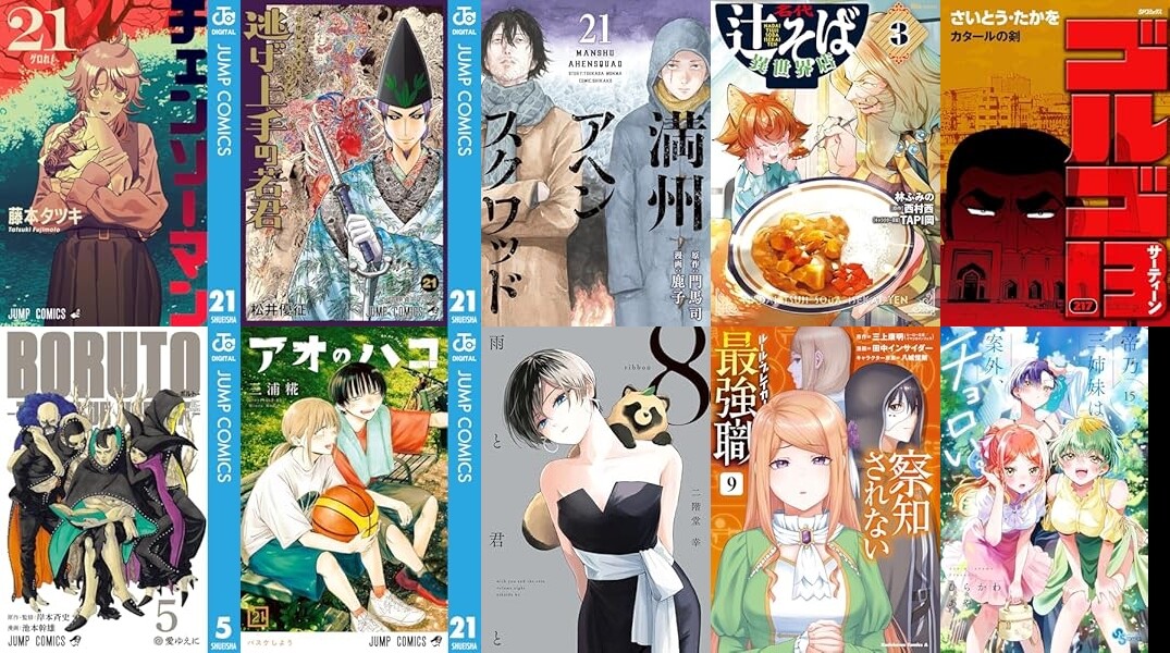 集英社よりジャンプコミックス多数発売!「チェンソーマン 21」「逃げ上手の若君 21」「BORUTO-ボルト- -TWO BLUE VORTEX- 5」「アオのハコ 21」「ウィッチウォッチ 22」「D.Gray-man 29」「恋人以上友人未満 9」「ケントゥリア 5」「鵺の陰陽師 10」「超巡!超条先輩 6」「クソ女に幸あれ 7」「ゴーストフィクサーズ 5」「シバつき物件 4」など発売。
