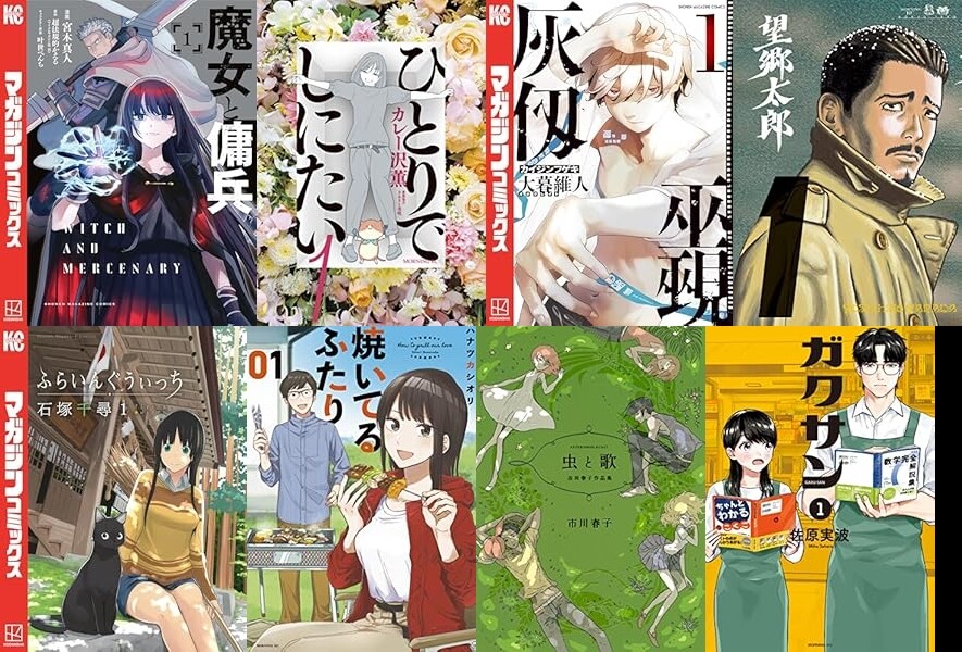 「魔女と傭兵」「ひとりでしにたい」「灰仭巫覡」「望郷太郎」「ふらいんぐうぃっち」「焼いてるふたり」「市川春子作品集」「ガクサン」「コウノドリ」「バトルスタディーズ」などなど。