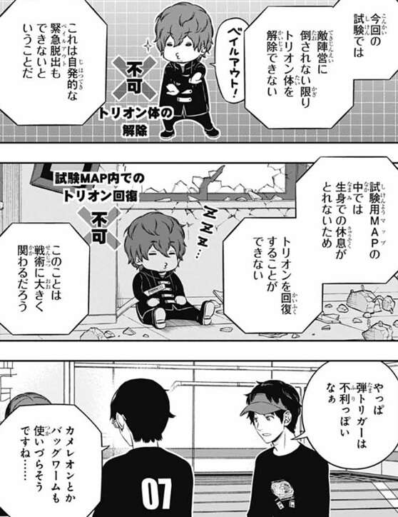 食事は試験MAP内でトリオン体で食べておけばベイルアウト後に十分な休息だけ取れば再出撃可能、みたいな感じなのかな?