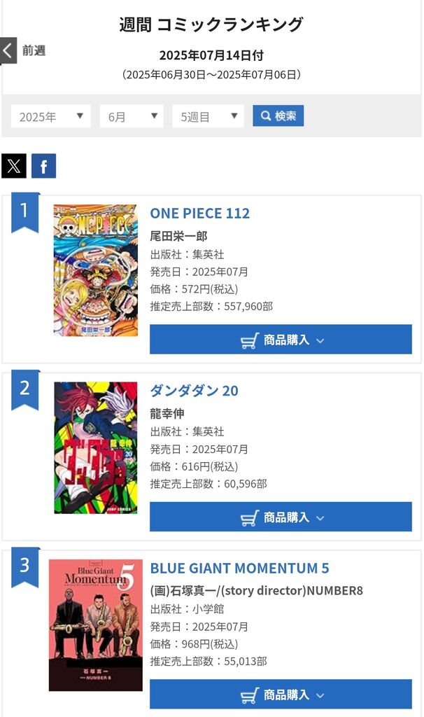ワンピースの最新巻の初週売上、めちゃくちゃ落ちてしまうwwwwwww 2025/7/12 ジャンプ速報 " " 1: 風吹けば名無し 2025/07/11(金) 12:44:34.68 ID:BIeBZuour 6: 風吹けば名無し 2025/07/11(金) 12:50:01.67 ID:0UgLAHqE0 あと10年くらいで終わりそう? 続きを読む Source: ジャンプ速報