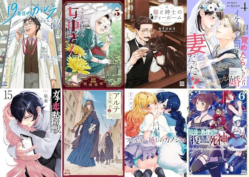 「19番目のカルテ 徳重晃の問診」「うちのちいさな女中さん」「猫と紳士のティールーム」「いきなり婚」「ガチ恋粘着獣」「アルテ」「フィルター越しのカノジョ」「明かせぬ正体 最強の糸使いは復讐の死神になる」「異世界領地改革」など対象です。