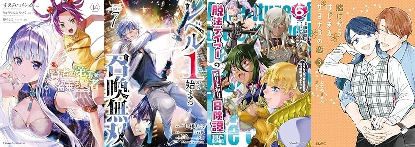 7月31日発売したばかり「賢者の弟子を名乗る賢者」最新14巻が対象、さらに「レベル1から始まる召喚無双」「脱法テイマーの成り上がり冒険譚」「賭けからはじまるサヨナラの恋」「組長娘と世話係」「#神奈川に住んでるエルフ」「KILLER’S HOLIDAY」「ご主人様とゆく異世界サバイバル!」「爆乳たちに追放されたが戻れと言われても、もう遅……戻りましゅぅぅ!」「無能は不要と言われ『時計使い』の僕は職人ギルドから追い出されるも、ダンジョンの深部で真の力に覚醒する」などもセールです。