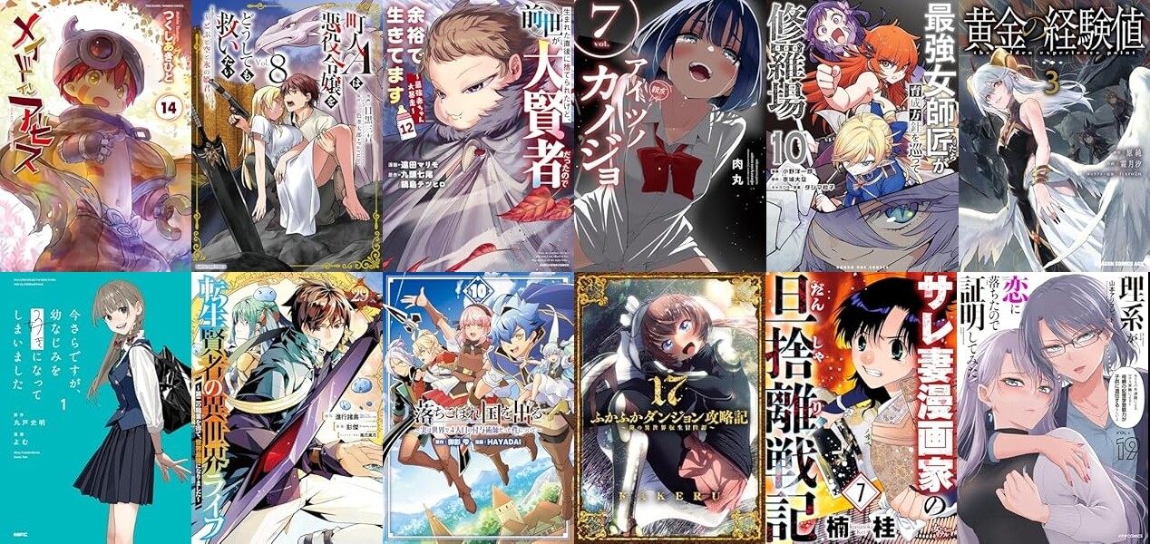 竹書房「メイドインアビス (14)」、アース・スター「町人Aは悪役令嬢をどうしても救いたい~どぶと空と氷の姫君~ 8」「生まれた直後に捨てられたけど、前世が大賢者だったので余裕で生きてます 12」「戦国小町苦労譚 甲斐終焉 18」「冒険者になりたいと都に出て行った娘がSランクになってた -黒髪の戦乙女- 9」など発売。
