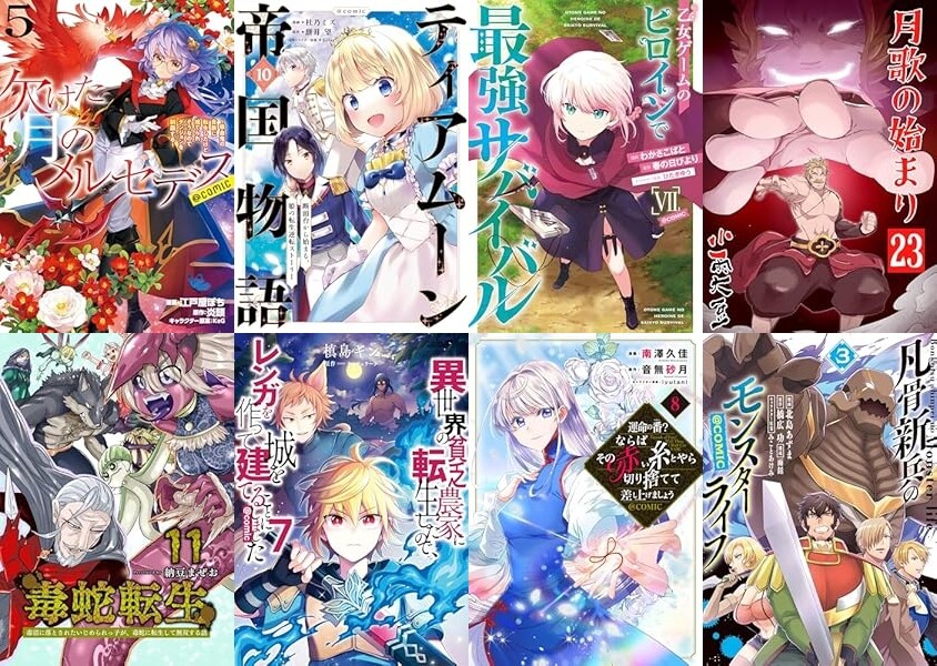 TOブックスからは「欠けた月のメルセデス 5巻」「ティアムーン帝国物語 第10巻」「乙女ゲームのヒロインで最強サバイバル 7巻」「異世界の貧乏農家に転生したので、レンガを作って城を建てることにしました 7巻」「運命の番?ならばその赤い糸とやら切り捨てて差し上げましょう 8巻」など、45%ポイント還元となっている作品も多々あります。
