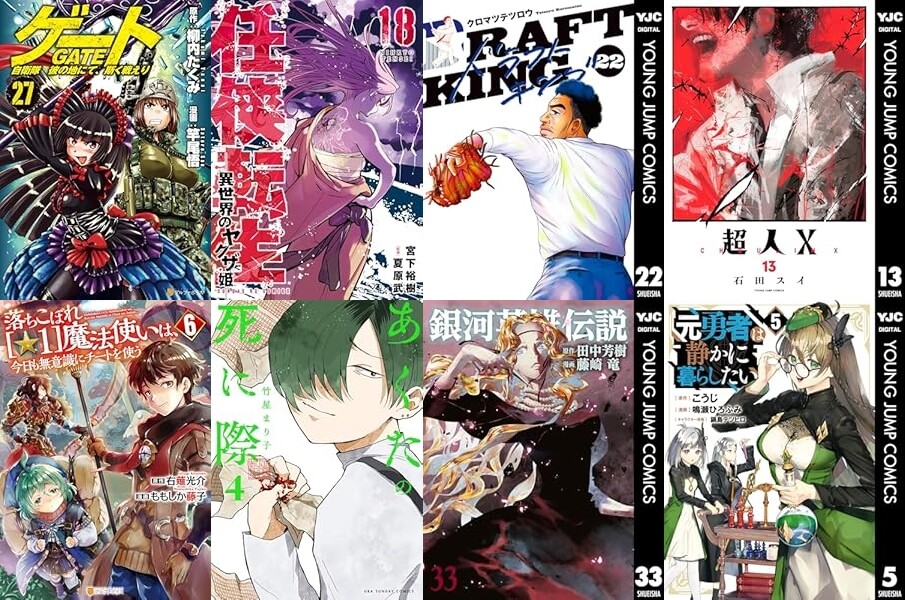集英社は45%ポイント還元「ドラフトキング 22」「超人X 13」「銀河英雄伝説 33」「元勇者は静かに暮らしたい 5」「ドッグスレッド 6」に、「ジャンケットバンク 19」「エロゲの世界でスローライフ 6」「キャプテン2 16」「ボロボロのエルフさんを幸せにする薬売りさん 1」など発売です。