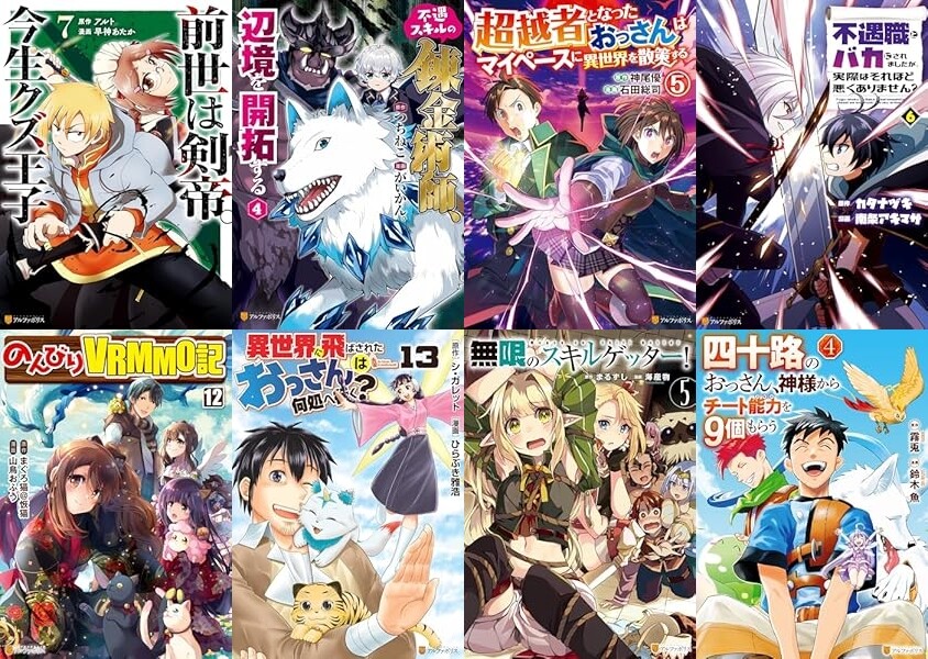 「前世は剣帝。今生クズ王子」「不遇スキルの錬金術師、辺境を開拓する」「超越者となったおっさんはマイペースに異世界を散策する」「不遇職とバカにされましたが、実際はそれほど悪くありません?」「のんびりVRMMO記」「異世界に飛ばされたおっさんは何処へ行く?」「無限のスキルゲッター!」「四十路のおっさん、神様からチート能力を9個もらう」「えっ、能力なしでパーティ追放された俺が全属性魔法使い!?」など対象です。
