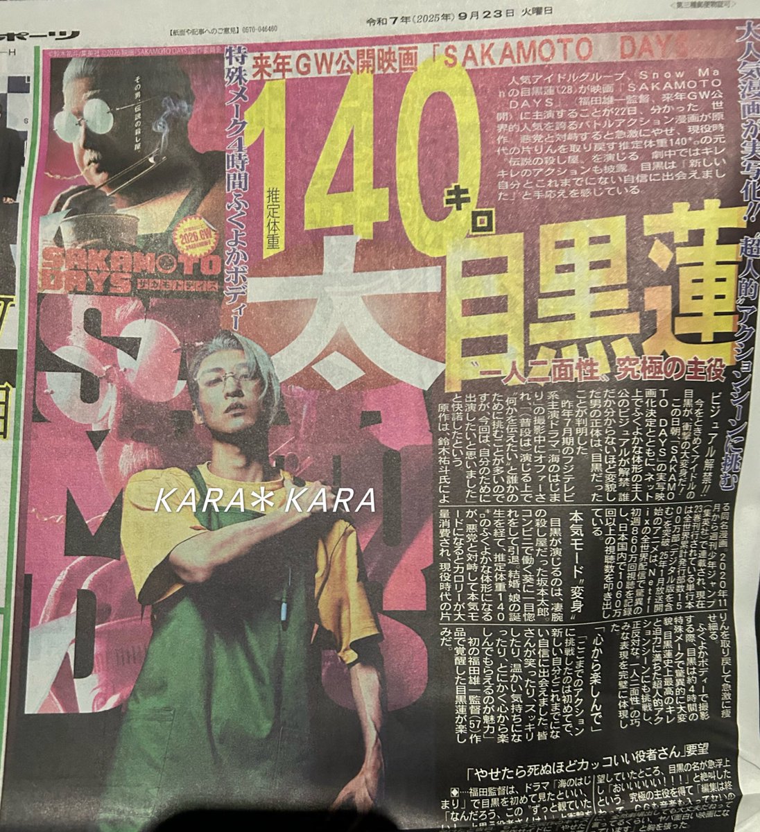 【速報】人気漫画「サカモトデイズ 」、SnowMan目黒蓮主演監督福田雄一で実写映画化決定wwwwwwwwwww 2025/9/23 超マンガ速報 " " 1: 2025/09/23(火) 04:21:23.844 ID:7FCmA2Vm4 https://pbs.twimg.com/media/G1d9VrRbcAAGt5G.jpg 続きを読む Source: 超マンガ速報