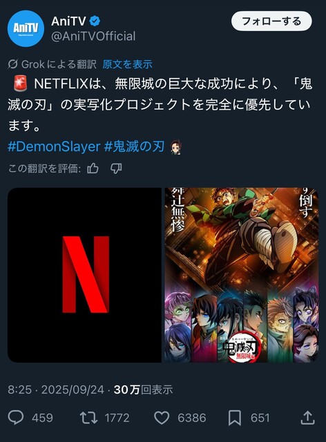 【鬼滅の刃】実写化ある? 2025/9/25 ねいろ速報さん " " 名前:ねいろ速報 竈門炭治郎を処刑せよ! 名前:ねいろ速報 1 むしろ今まで動いてなかったのが不思議 名前:ねいろ速報 2 殺陣できる人集めんのかな… 続きを読む Source: ねいろ速報さん
