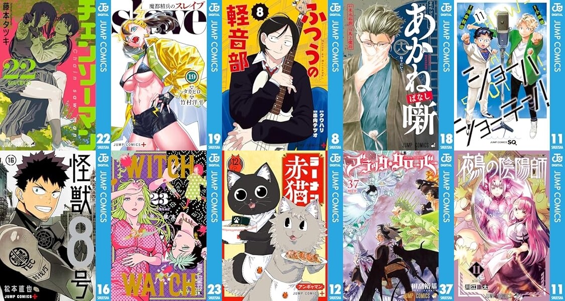 アニメ映画で話題「チェンソーマン」に、完結となった「怪獣8号」、ほかにも「魔都精兵のスレイブ」「ふつうの軽音部」「ウィッチウォッチ」「あかね噺」「ブラッククローバー」「ショーハショーテン!」「鵺の陰陽師」「新テニスの王子様」「ラーメン赤猫」「超巡!超条先輩」「ひまてん!」「株式会社マジルミエ」「MAD」「しのびごと」など40作品以上をまとめました。