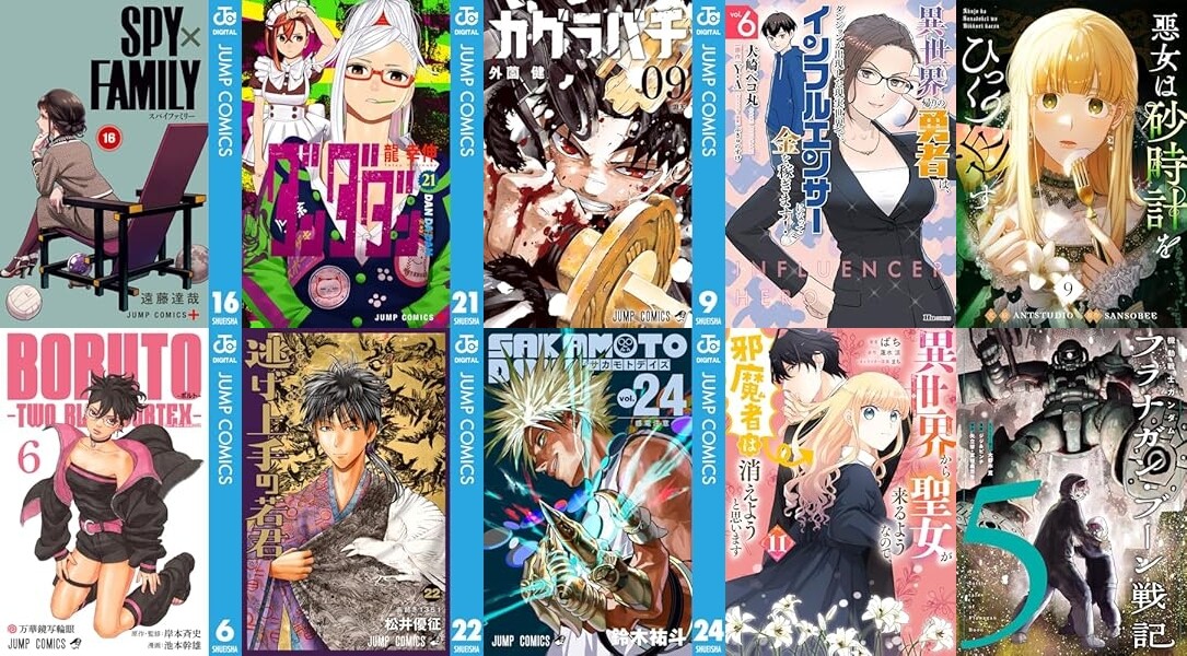 集英社ジャンプコミックス新刊が一挙発売!新刊以前の巻はほとんど50%ポイント還元となっています(2025年10月3日まで)。「SPY×FAMILY 16」「ダンダダン 21」「カグラバチ 9」「BORUTO-ボルト- -TWO BLUE VORTEX- 6」「逃げ上手の若君 22」「SAKAMOTO DAYS 24」「魔男のイチ 5」「サンキューピッチ 3」「アオのハコ 22」「この音とまれ! 33」「忘却バッテリー 22」「2.5次元の誘惑 24」「ケントゥリア 6」「限界OL霧切ギリ子」「キン肉マン 90」「モノクロのふたり 3」「クソ女に幸あれ 8」など50冊以上の新刊があります。