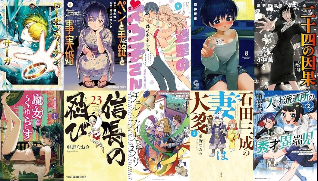 ヒーローズ「ローゼンガーテン・サーガ(14)」「魔女とくゅらす(1)」白泉社「ペンと手錠と事実婚 6」「信長の忍び 23」「撃のえろ子さん9」「チェルノブイリの祈り 4」など、日本文芸社「ないしょの予習 8」「蒼の不倫 6」など、双葉社「石田三成の妻は大変 : 2」、ぶんか社「強制除霊師・斎 (16)」、集英社「ジャンプSQ. RISE 2025 AUTUMN」、ナンバーナイン「架空軍の上官と部下 1」、徳間書店「天才派遣所の秀才異端児(2)」など発売です。