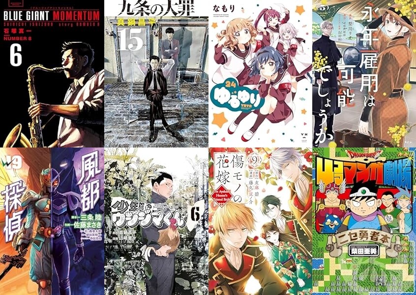 小学館「BLUE GIANT MOMENTUM(6)」「九条の大罪(15)」「風都探偵(19)」「少年院ウシジマくん(6)」「【新装版】今どきの若いモンは(29)」「卑弥呼 -真説・邪馬台国伝-(19)」「日陰者でもやり直していいですか?(3)」など、一迅社「ゆるゆり: 24」など、講談社「永年雇用は可能でしょうか(5)」「傷モノの花嫁(9)」など発売。