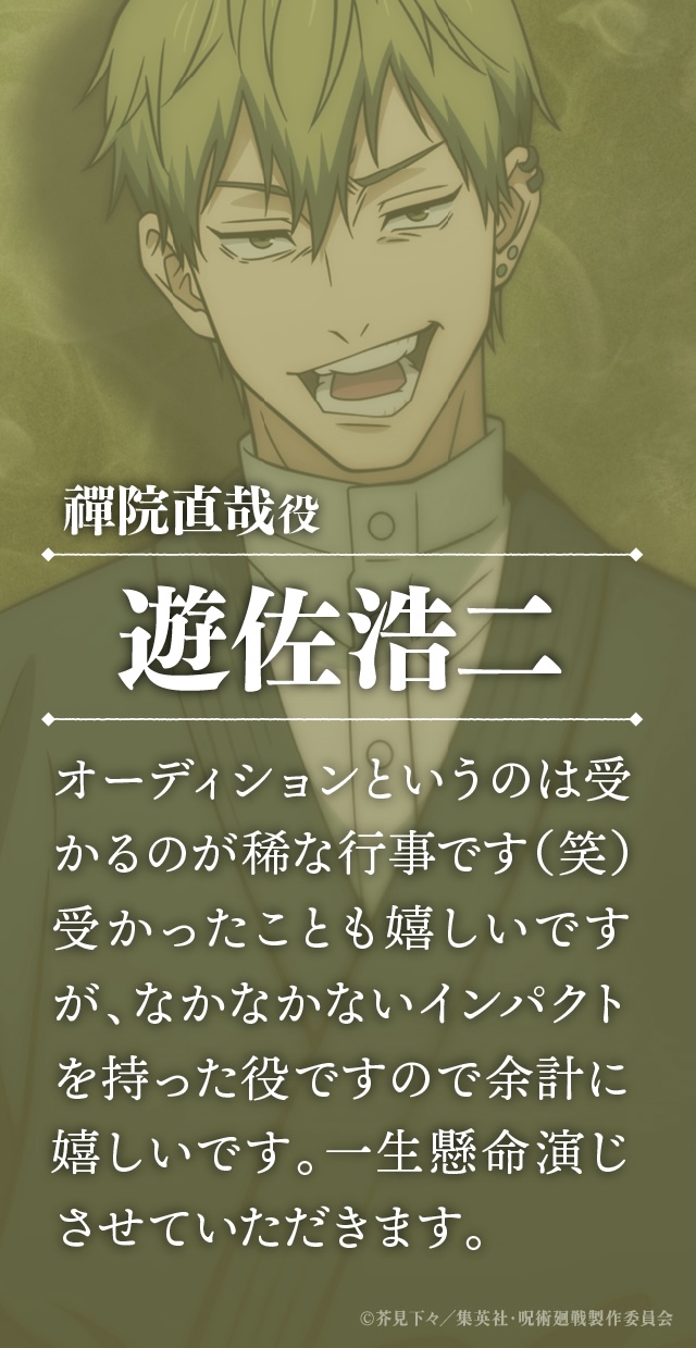 【呪術廻戦】遊佐浩二さんのコメント 2025/11/7 ねいろ速報さん " " 名前:ねいろ速報 禪院家 26 代目当主・禪院直毘人の息子で 真希・真依の従兄弟である禪院直哉を 遊佐浩二さんが演じます!! 名前:ねいろ速報 1 知ってた 名前:ねいろ速報 2 悪役を演じるのはめちゃくちゃ楽しい 続きを読む Source: ねいろ速報さん