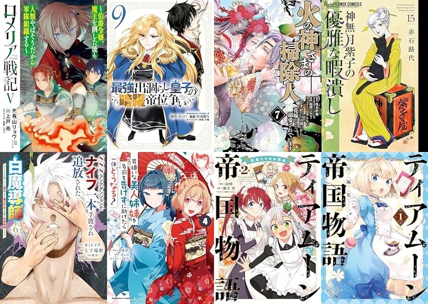 マッグガーデン「ロメリア戦記5巻」、KADOKAWA「最強出涸らし皇子の暗躍帝位争い (9)」「SSSランクダンジョンでナイフ一本手渡され追放された白魔導師 ユグドラシルの呪いにより弱点である魔力不足を克服し世界最強へと至る 6」「男嫌いな美人姉妹を名前も告げずに助けたら一体どうなる? 4」「りんちゃんは据え膳したい(6)」「13回目の足跡 (6)」など、小学館「火の神さまの掃除人ですが、いつの間にか花嫁として溺愛されています(7)」「神無月紫子の優雅な暇潰し(15)」など、TOブックス「ティアムーン帝国物語~従者たちのお茶会~ 第2巻」「ティアムーン帝国物語短編集@COMIC第1巻」など発売です。