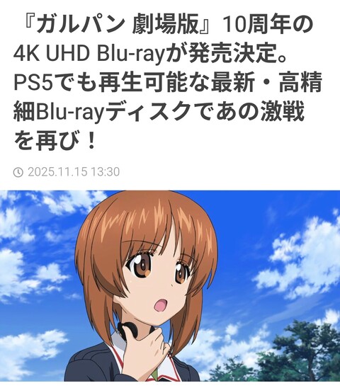 【ガルパン】10年経っても劇場版まだ完結してないのおかしい気がしてくる 2025/11/17 ねいろ速報さん " " 名前:ねいろ速報 冷静に考えると10周年記念ってより 名前:ねいろ速報 1 劇場版はルール無用だろ 名前:ねいろ速報 2 そのとおりですね… 他に文句を言いたいことがあったら言ってください! 何にでも共感しますよ! 続きを読む Source: ねいろ速報さん