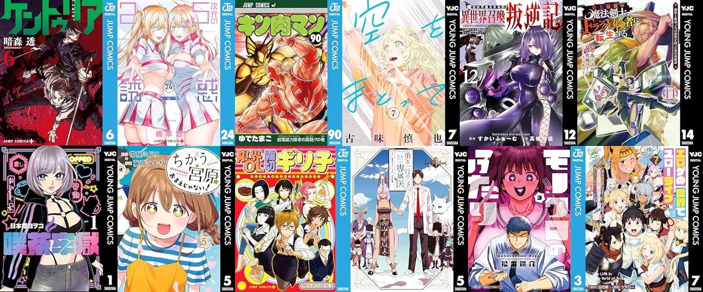 「ケントゥリア」「2.5次元の誘惑」「キン肉マン」「空をまとって」「俺だけ不遇スキルの異世界召喚叛逆記」「史上最強の魔法剣士、Fランク冒険者に転生する」「喫茶牢獄」「ちがう宮原おまえじゃない!」「限界OL霧切ギリ子」「勇者一行の専属医」「モノクロのふたり」など40冊以上をまとめました。