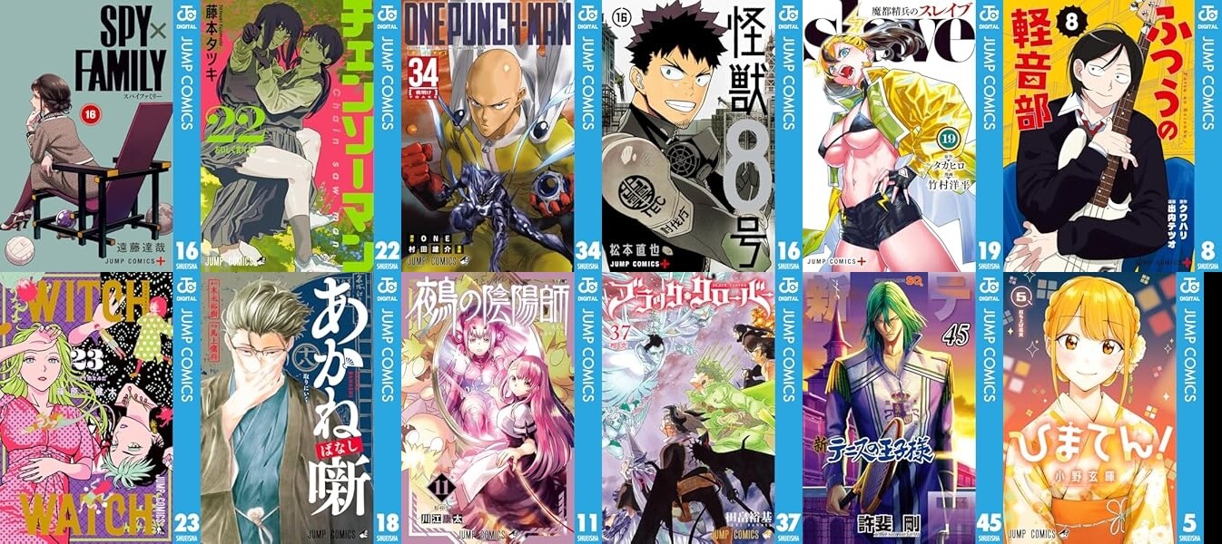 「SPY×FAMILY」「チェンソーマン」「ワンパンマン」「怪獣8号」「魔都精兵のスレイブ」「ふつうの軽音部」「ウィッチウォッチ」「あかね噺」「鵺の陰陽師」「ブラッククローバー」「」「新テニスの王子様」「ひまてん!」「しのびごと」「ショーハショーテン!」「ラーメン赤猫」「MAD」など対象です。