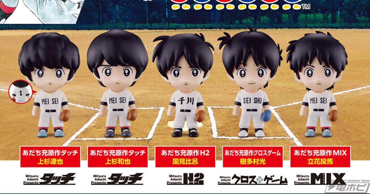 あだち充先生の画業55周年を記念したガシャポンフィギュア「ならぶんです。」が登場!『タッチ』から上杉達也&上杉和也をはじめ、『H2』国見比呂、『クロスゲーム』樹多村光、『MIX』立花投馬を収録!