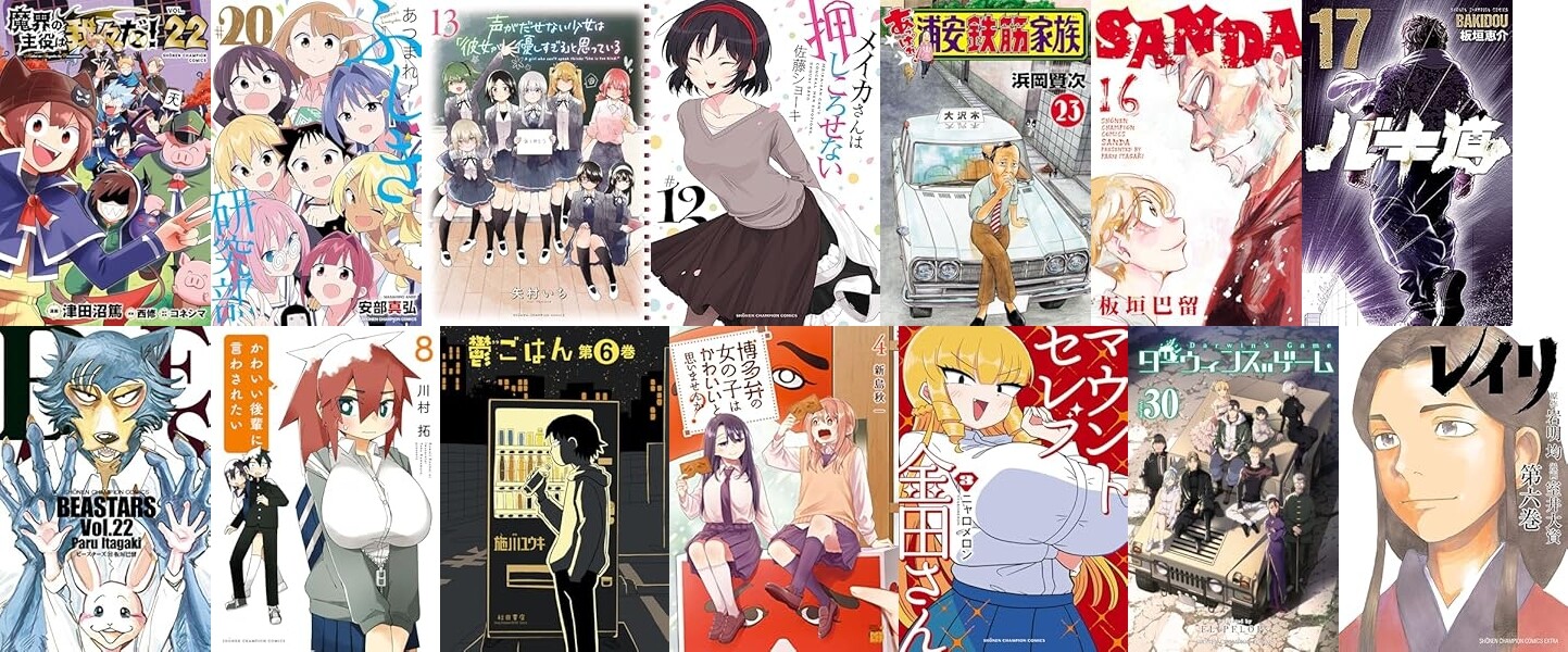 「魔界の主役は我々だ!」「あつまれ!ふしぎ研究部」「SANDA」「声がだせない少女は『彼女が優しすぎる』と思っている」「ハリガネサービスACE」「バキ道」「メイカさんは押しころせない」「BEASTARS」「魔法少女サイト」「かわいい後輩に言わされたい」「鬱ごはん」「博多弁の女の子はかわいいと思いませんか?」「マウントセレブ金田さん」「ババンババンバンバンパイア」「ダーウィンズゲーム」「レイリ」などなど。