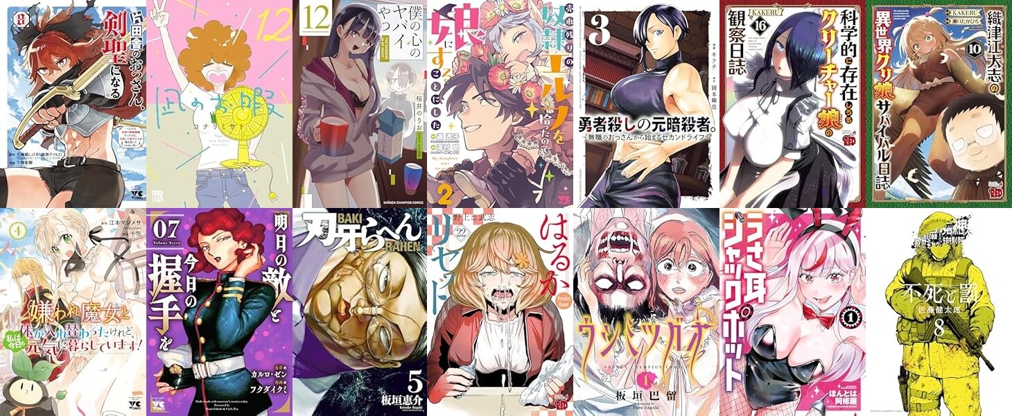 また「凪のお暇」「僕の心のヤバイやつ」「売れ残りの奴隷エルフを拾ったので、娘にすることにした」「勇者殺しの元暗殺者。」「科学的に存在しうるクリーチャー娘の観察日誌」「織津江大志の異世界クリ娘サバイバル日誌」「嫌われ魔女と体が入れ替わったけれど、私は今日も元気に暮らしています!」「明日の敵と今日の握手を」「刃牙らへん」「はるかリセット」「ウシミツガオ」「うさ耳ジャックポット」など35作品以上をまとめました。