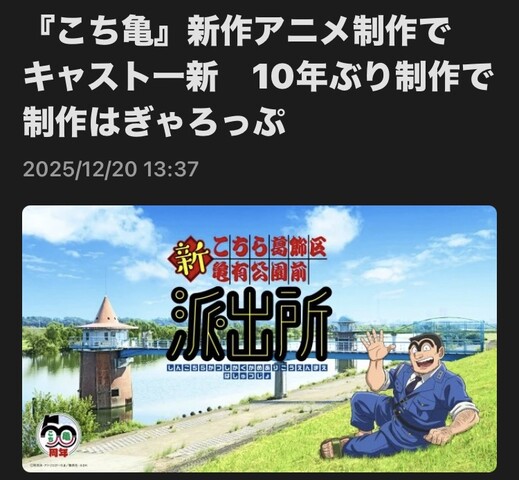 【こち亀】またお茶の間で角刈りが見れるのか 2025/12/21 ねいろ速報さん " " 名前:ねいろ速報 名前:ねいろ速報 1 ゴールデンタイムにやってほしいな 名前:ねいろ速報 2 なんでラサール使わんの 続きを読む Source: ねいろ速報さん