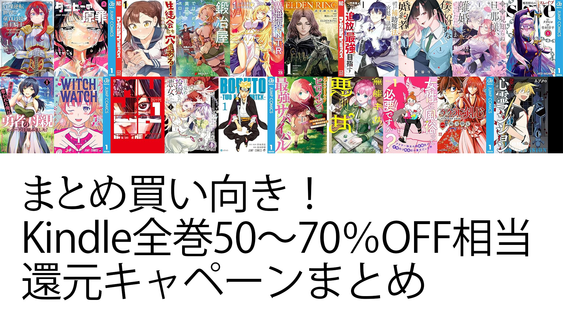 Kindleで大規模なマンガポイント還元キャンペーンが開催中。こちらでは、(発売中の)全巻がセールとなっている作品をまとめました。