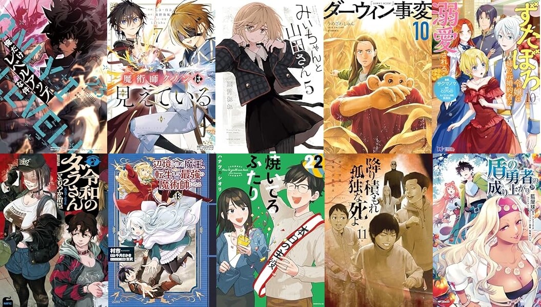 Piccomics「俺だけレベルアップな件 23」など、KADOKAWA「魔術師クノンは見えている 7」「令和のダラさん 7」「辺境ぐらしの魔王、転生して最強の魔術師になる 13」「盾の勇者の成り上がり 29」「その悪役貴族、ママヒロインが好きすぎる 3」「洞窟王からはじめる楽園ライフ8」「対ありでした。10」「反逆コメンテーターエンドウさん 4」「乙女怪獣キャラメリゼ 9」など発売。