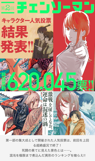 【チェンソーマン】第二回人気投票結果発表! 2021/4/30 ねいろ速報さん " " 名前:ねいろ速報 何も見たくねえ… 名前:ねいろ速報 1 サイトに繋がらないんれすけお! 名前:ねいろ速報 2 姫アキ最高!姫アキ最高! 続きを読む Source: ねいろ速報さん