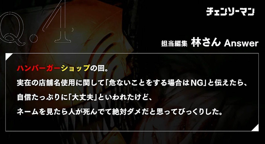 【チェンソーマン】バーガーショップの回 2021/6/29 ねいろ速報さん " " 名前:ねいろ速報 名前:ねいろ速報 1 実在するハンバーガーチェーン店使おうとしたらしいな 名前:ねいろ速報 3 >>1 びっくりした 続きを読む Source: ねいろ速報さん