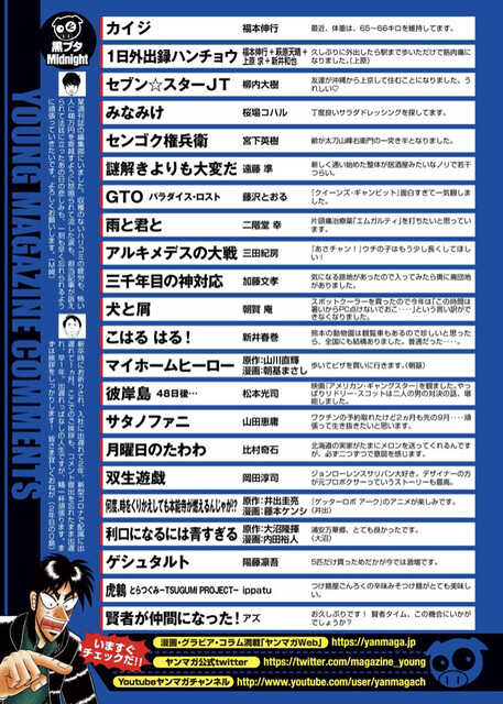 【画像】今週の週刊ヤングマガジンwww 2021/7/13 ねいろ速報さん " " 1: ねいろ速報 犬と屑しかない模様 2: ねいろ速報 いうほどあかんか? 3: ねいろ速報 センゴクがどんよりしすぎて読むのしんどくなってきた 続きを読む Source: ねいろ速報さん